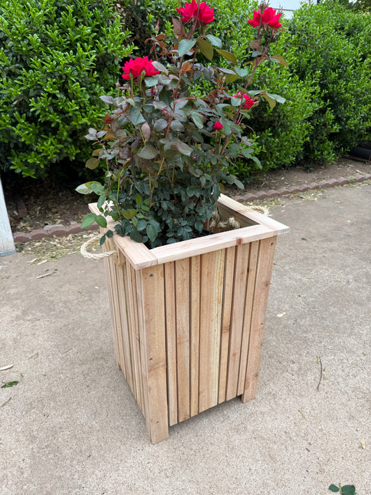 Rustic Cedar Wood Planter with Vertical Slats & Rope Handles